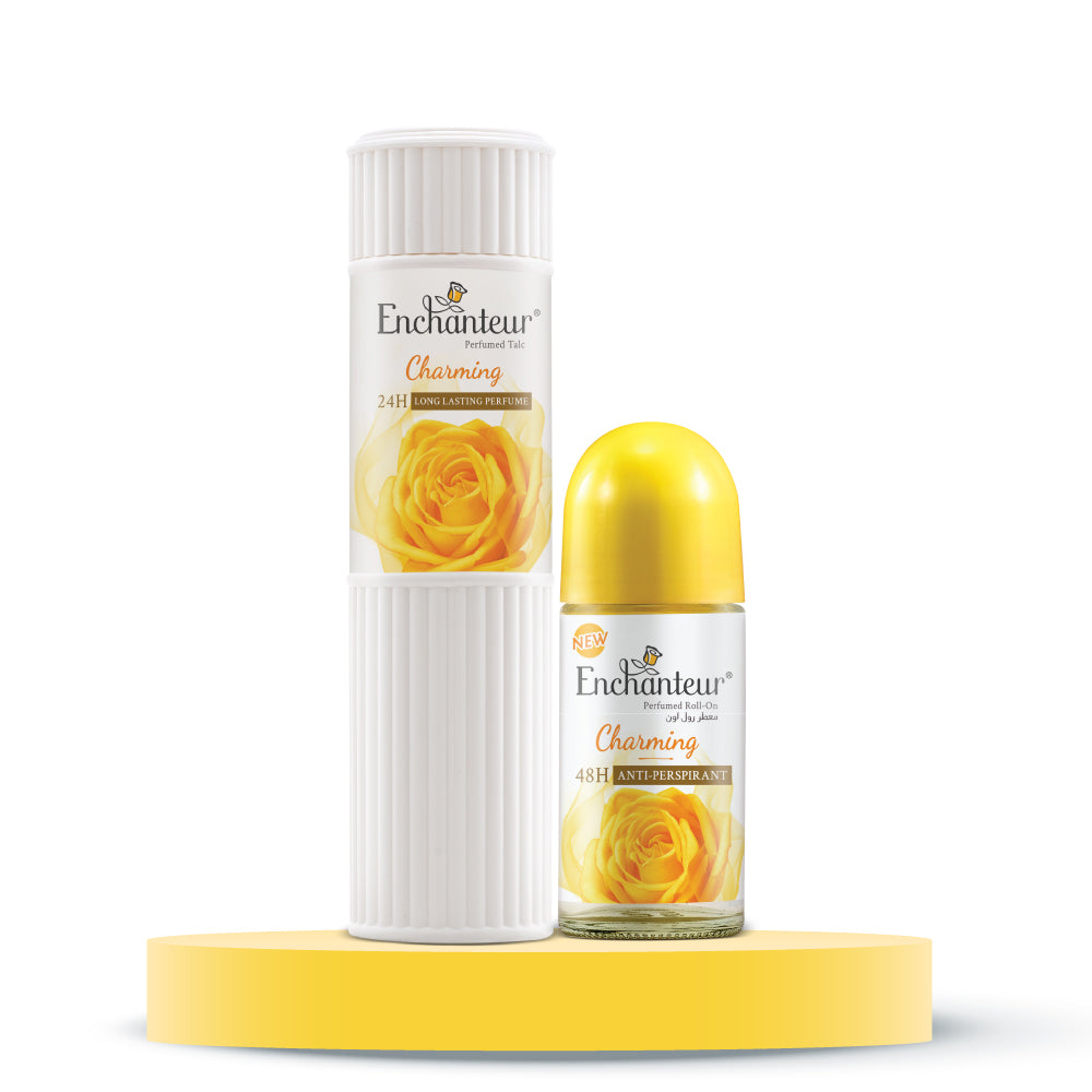 Enjoy the freshness of Citrus and the floral burst of Roses for longer with Enchanteur Charming Perfumed Roll-on Deo. These refreshing notes are signature to our much-loved fragrance, Enchanteur Charming. And when combined with the long-lasting odor-protection of this Roll-on Deodorant, your charming persona will blossom beautifully.
